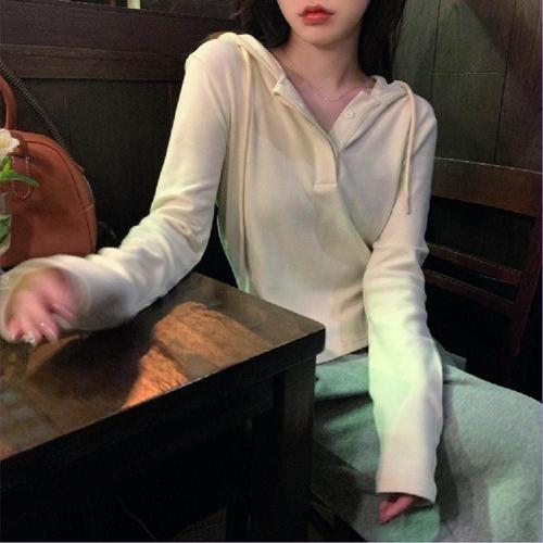 긴팔 단추 후드티셔츠 이지캐주얼 여리여리 집업 WFKOJ60
