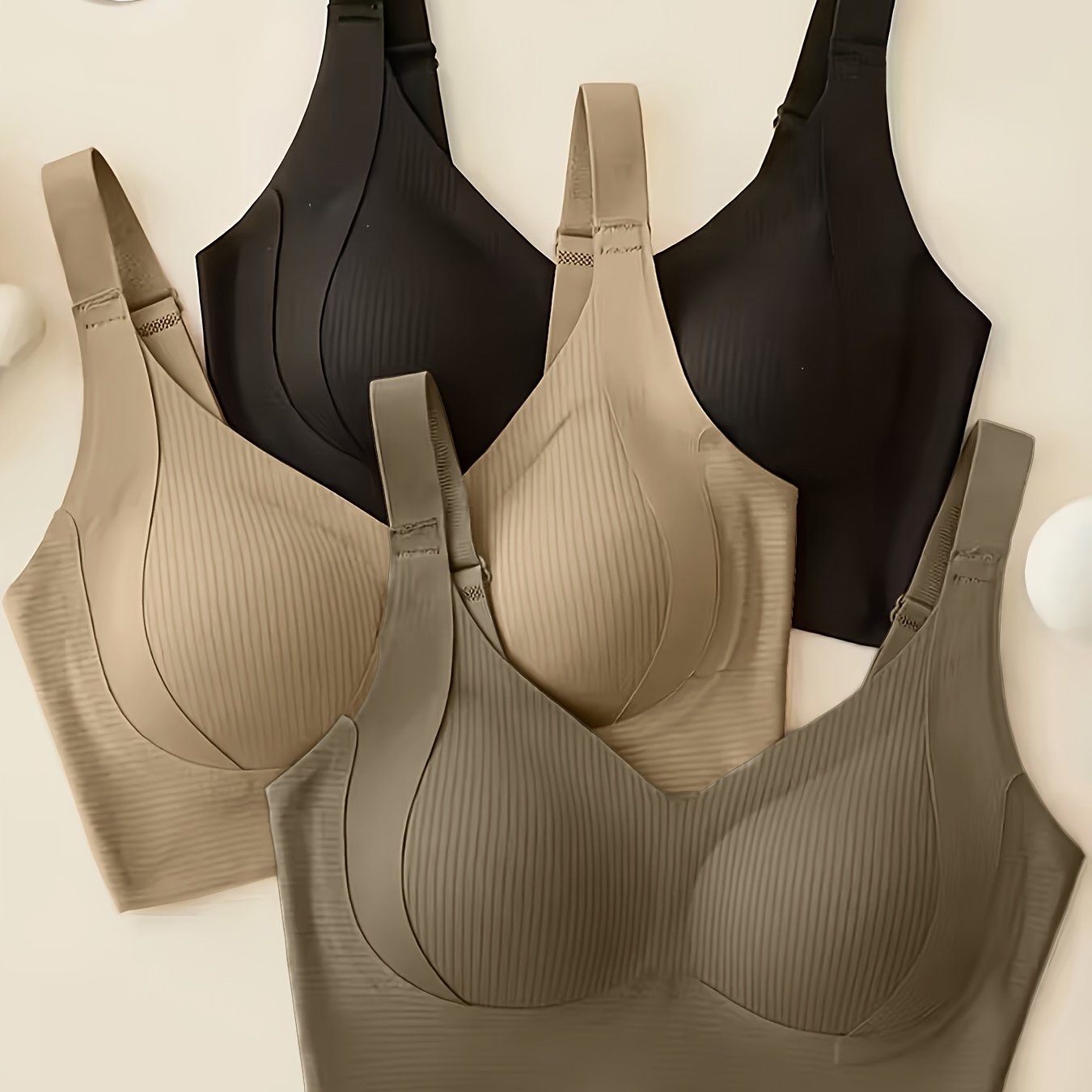 TEMU JOINBUY 여성용 풀커버 와이어프리 브라 3개 세트, 통기성이 뛰어난 심리스 디자인, 조절 가능한 V넥 스트랩, 탈착식 패드, 미디엄 리프트 소프트 솔, 요가, 헬스, 데일리웨어용 제품, 스포츠 & 캐주얼 속옷(심리스)