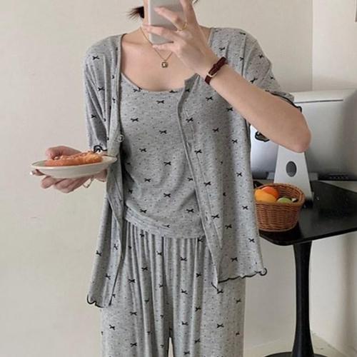 [옷자락] 여성 홈웨어 리본패턴 캡나시 반팔티팬츠 파자마 세트