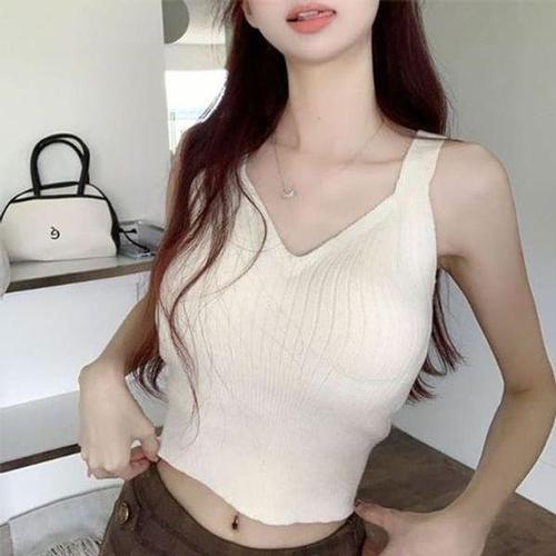 [에이치플러스몰]골지 여성 나시티 캡내장 민소매 브이넥 니트 나시 여성나시 여성나시티