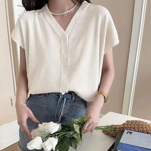 [셀럽하우스]데일리 UCFC2090 여성 캡소매 반팔 니트 가디건 캐주얼 자켓
