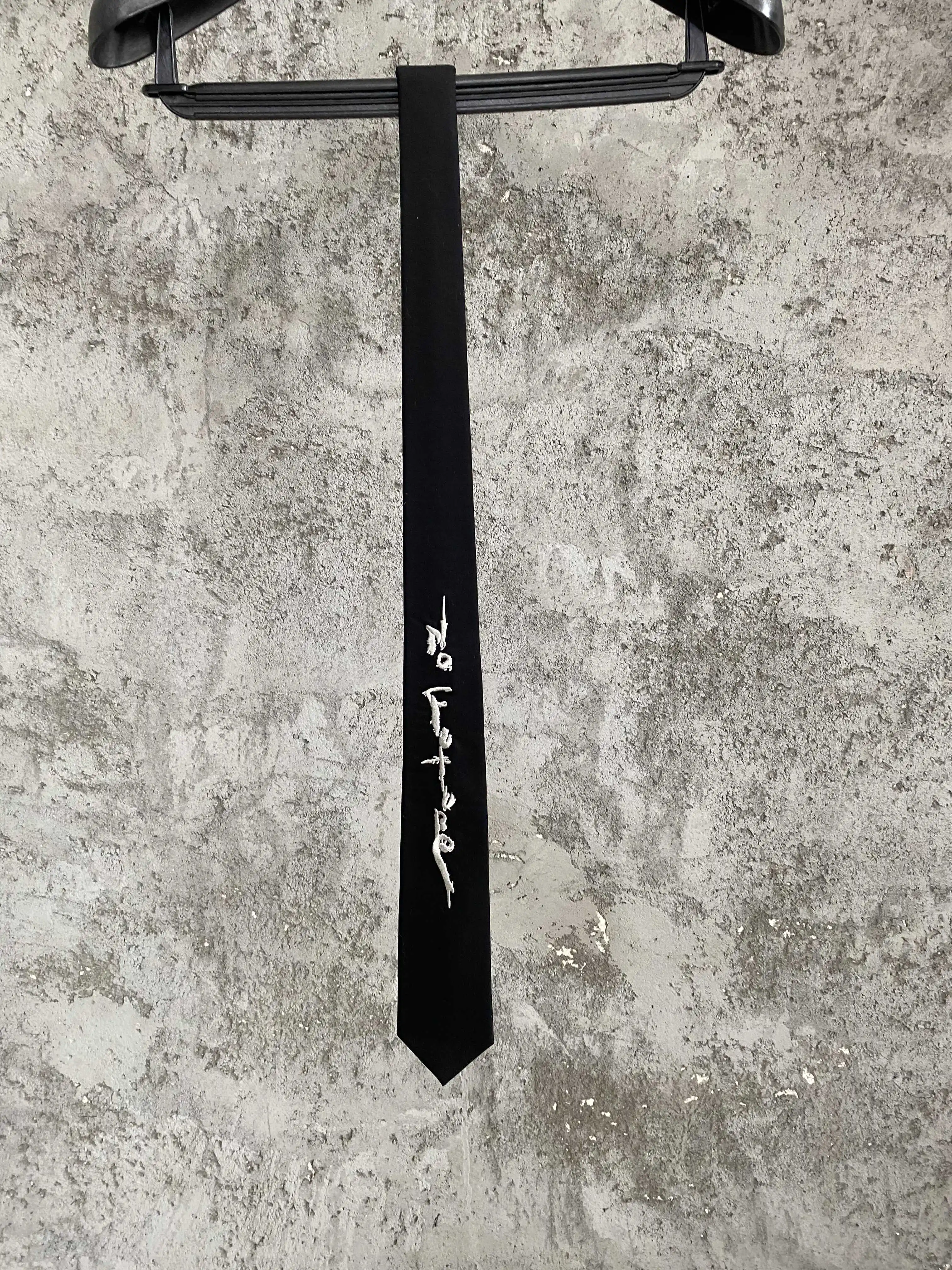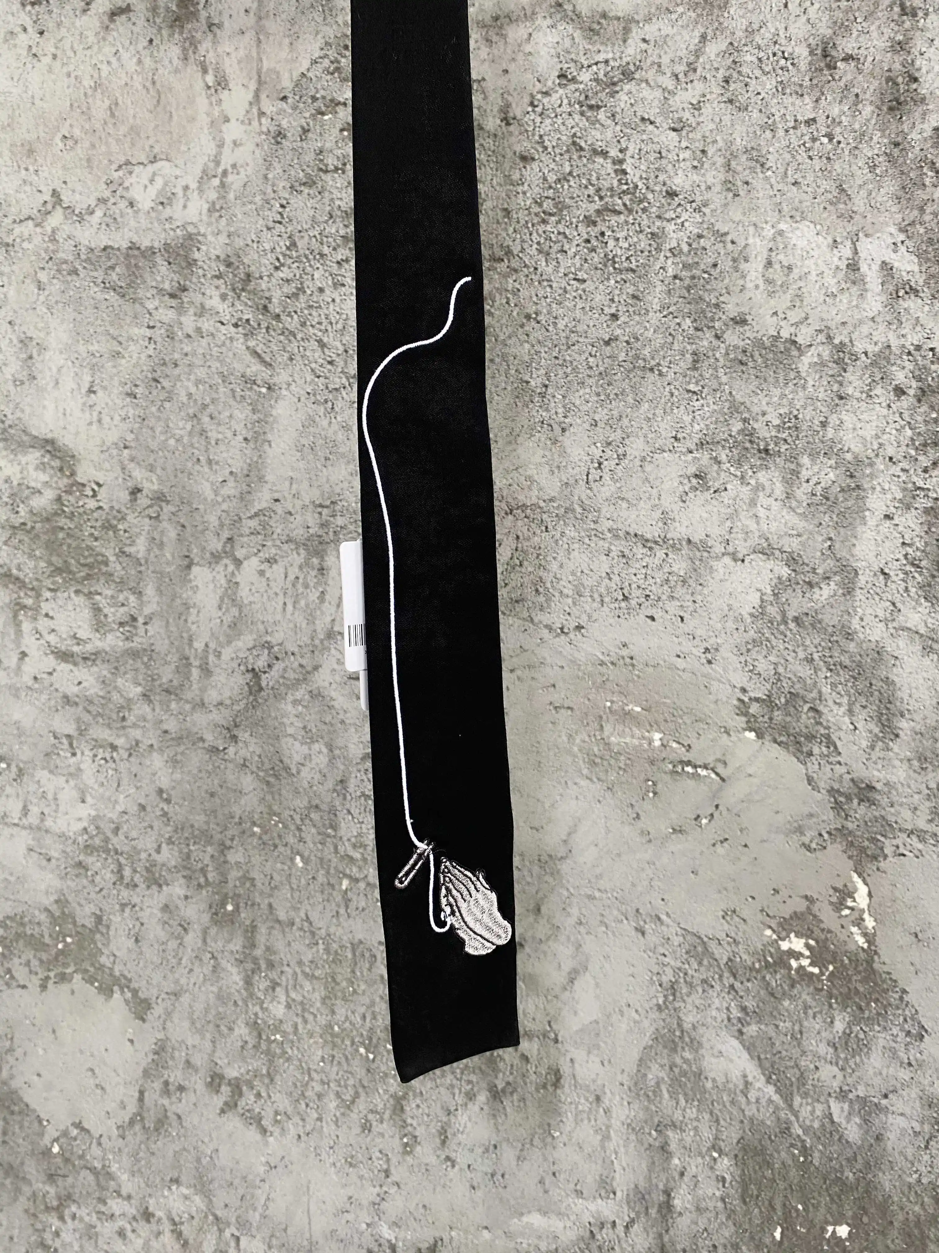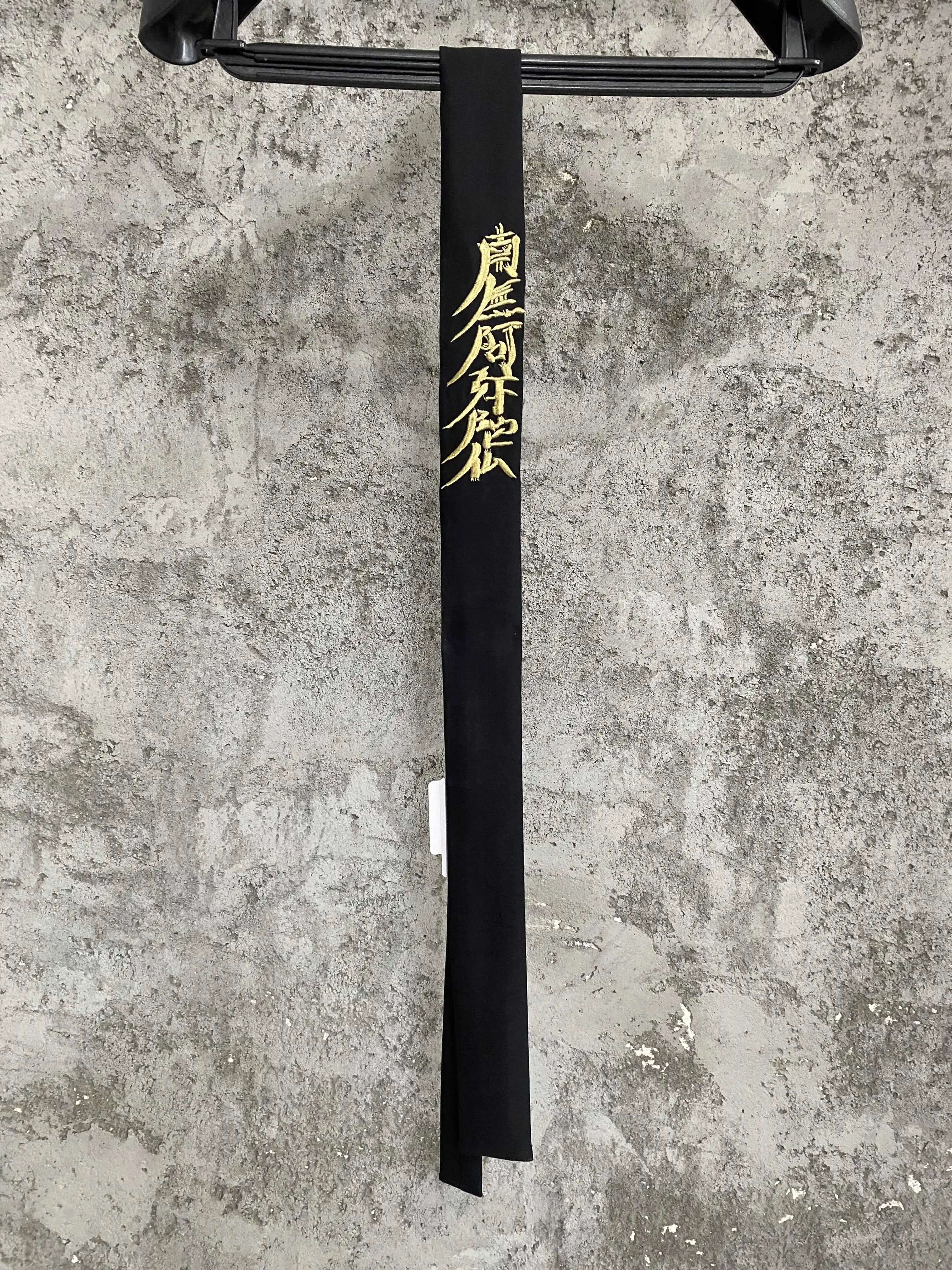 나모 아미타바 불상이 자수된 검은색 일본 양모 넥타이