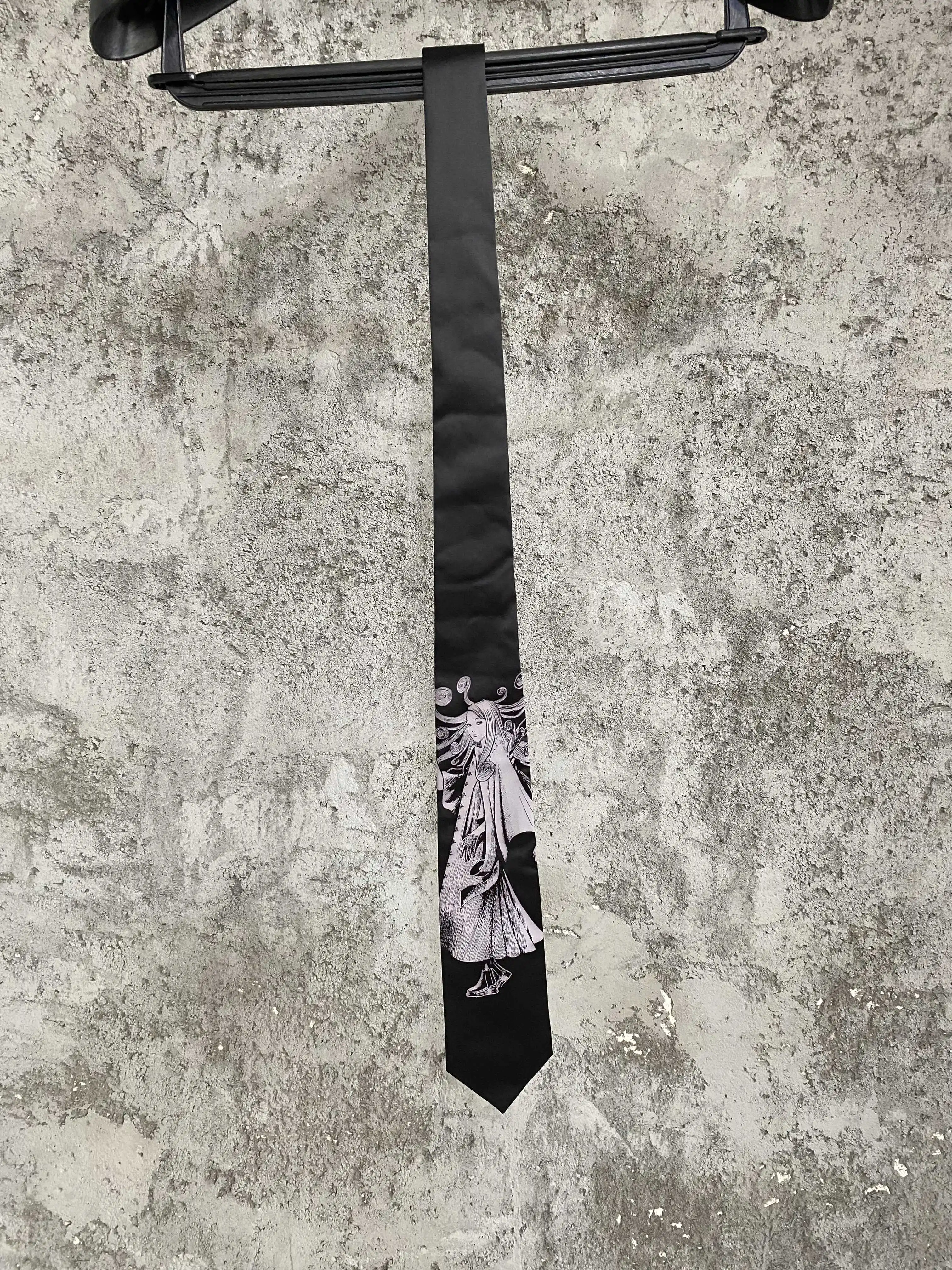 준지 이토의 호러 만화 프린트가 있는 어두운 분위기의 독특한 넥타이의 오리지널 디자인