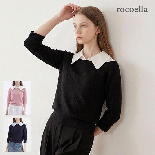 [로코엘라] 커스틴 레이어드 배색 셔츠 카라 니트