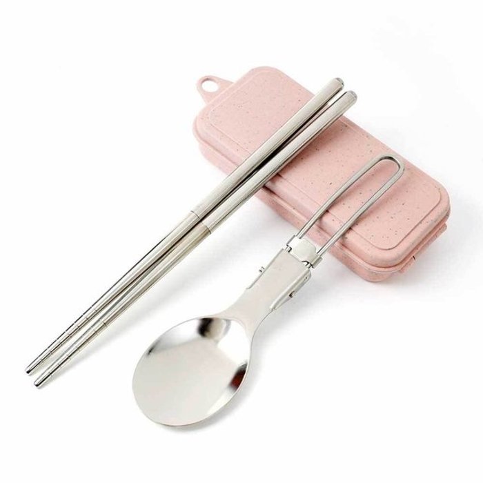 접이식 핑크 수저 등산수저 커트러리 2인세트 (3q2Hz)