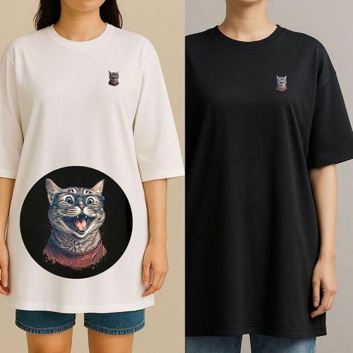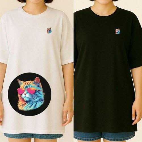 [에이치플러스몰]남녀공용 빅사이즈 88 힙스터 고양이 프린팅 커플룩