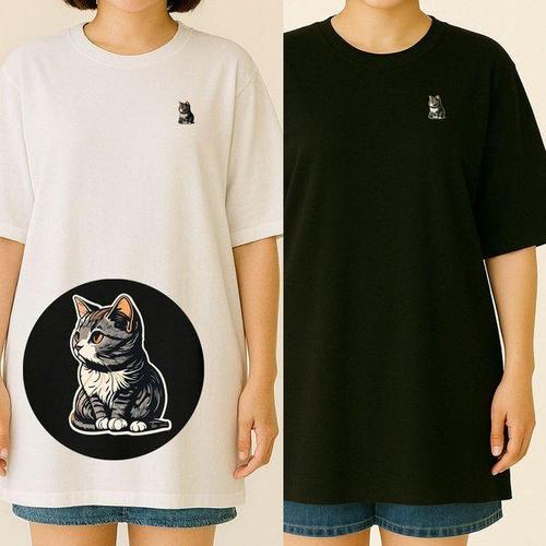 [에이치플러스몰]남녀공용 빅사이즈 88 귀여운 고양이 프린팅 커플룩