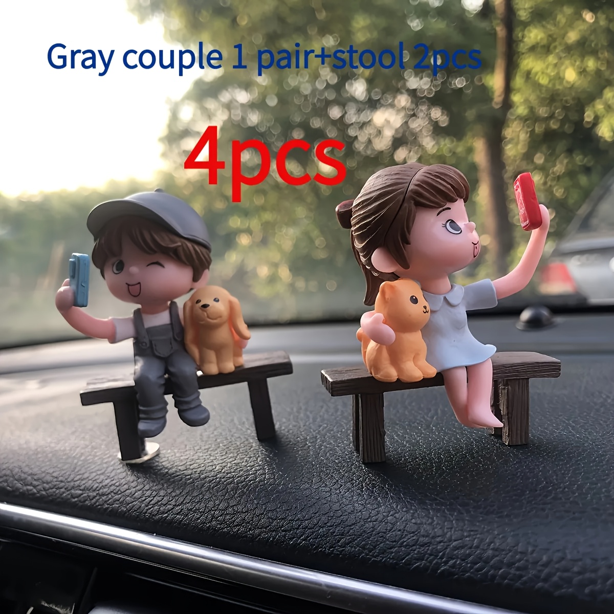 TEMU 4개 세트 PVC 자동차 대시보드 장식 - 재미있는 발판 의자 커플과 강아지 피규린, DIY 비전동 액세서리, 십대 및 성인용, 재미있는 자동차 인테리어 장식