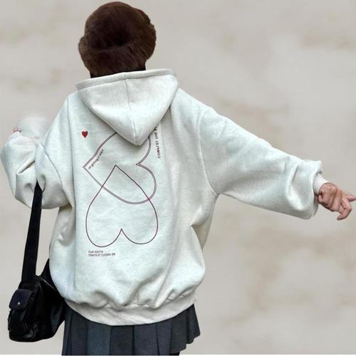 [옷자락] 여성 하트무늬 루즈핏 커플 후드 티 기모 티셔츠
