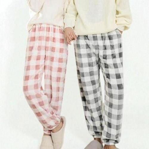 1+1 공유 양털 체크 밴딩바지 수면바지 커플잠옷 수면잠옷 겨울잠옷 여성잠옷 잠옷바지