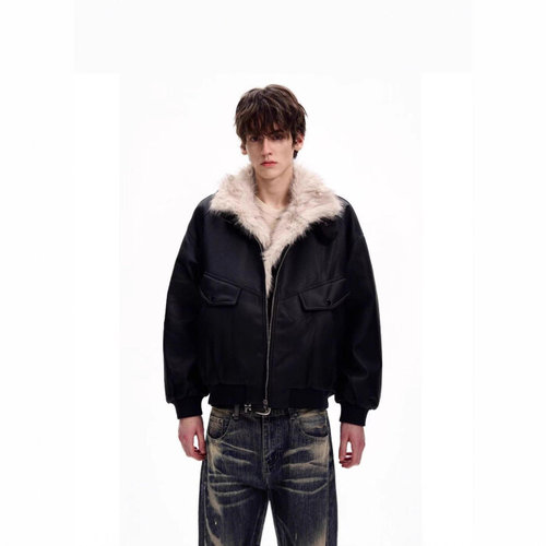 제로투올샵2 / 커플용 레트로 PU 가죽 겨울용 아우터 블랙 M