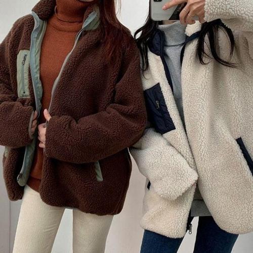 [셀러허브_여성트랜드패션]후리스 커플 뽀글이 플리스 아우터 디테일 자켓 배색