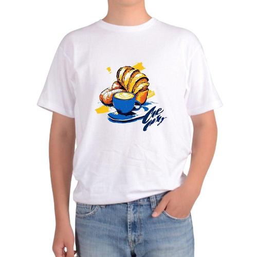 [에이치플러스몰]반팔 라운드티 빵 커피 크로와상 베이커리