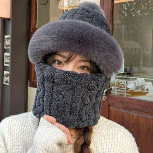 공용 4컬러 겨울 트위스트 방울 퍼 니트모자 넥워머 WFKVD7J