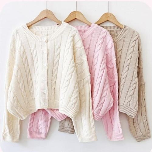 [엄지척]여성 3컬러 루즈핏 가을 겨울 꽈배기 니트 가디건_19874211_667501