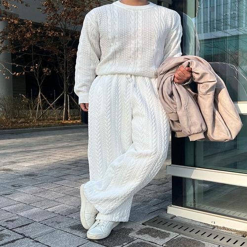 [원스톤]럭트 기모 꽈배기 벌룬 밴딩 팬츠 4color 와이드 편안한 트레이닝 겨울 신상 세트 셋업 추천