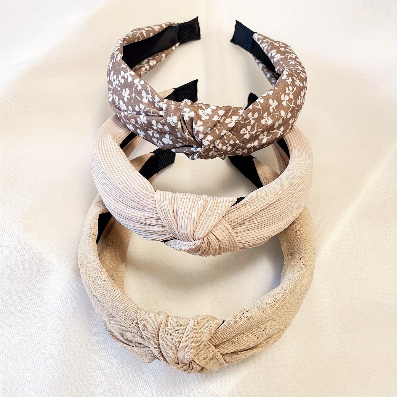 TEMU 3 세트의 소녀 카키 꽃 단색 원단 와이드 헤드밴드 간단한 착용 야외 세탁 헤드밴드 헤어 액세서리 일상 사용에 적합