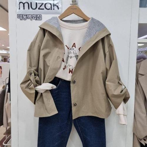 에쥬아 여성 모직 망토코트 금속 버튼 빈티지 케이프 망토