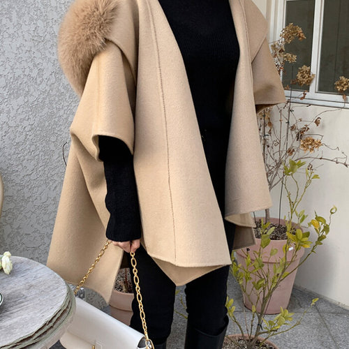 (더아이잗) 폭스퍼 칼라 캐시미어 케이프 코트 IPBA0CT058