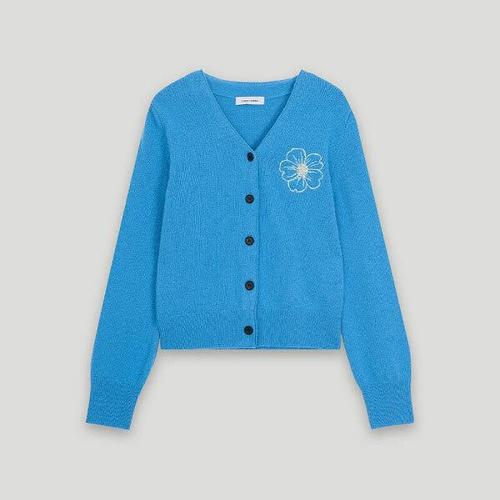 [코데즈컴바인][코데즈컴바인] 심볼자수 포인트 V넥 울혼방 가디건 (C_KD-CD501WA) (P003728509)