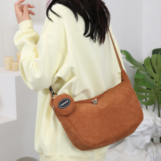 부드러운 곡선 라운드 디자이니 코듀로이 소재 귀여운 미니 크로스백 학생 패션 포근한 가방
