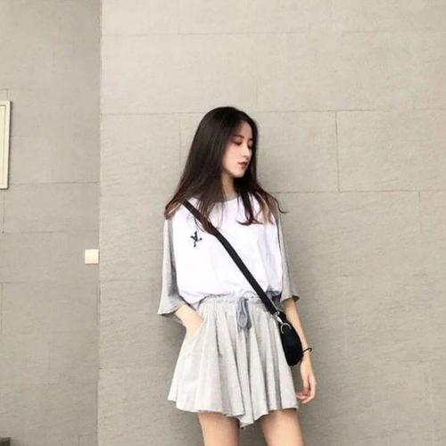 [에이치플러스몰]여름 시원한 여자 심플 반팔티 치마바지 코디세트