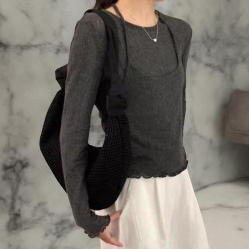 [다잇템]여성 코디 힙무드 코르셋 티셔츠 롱슬리브 세트