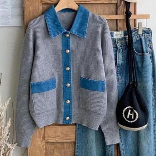 [다잇템_패션]여성용 스웨터 코디 진 카디건 투포켓
