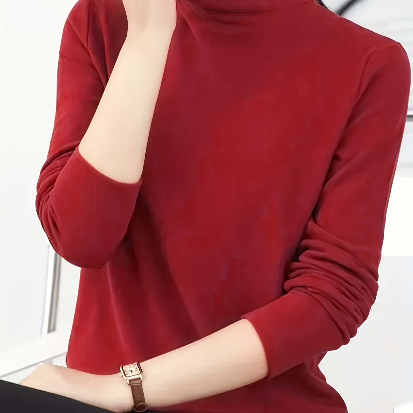 TEMU 솔리드 터틀넥 티셔츠, 우아한 긴팔 티셔츠, 여성 의류