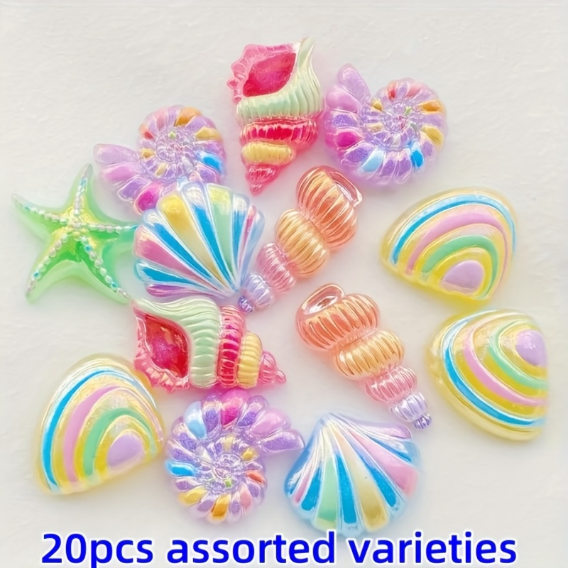 TEMU 20개 바다 테마 레진 비즈 - 반짝이는 별어류 및 해조류 장식 DIY 폰 케이스, 신발 장식 및 보석 제작, 해변 테마 장식