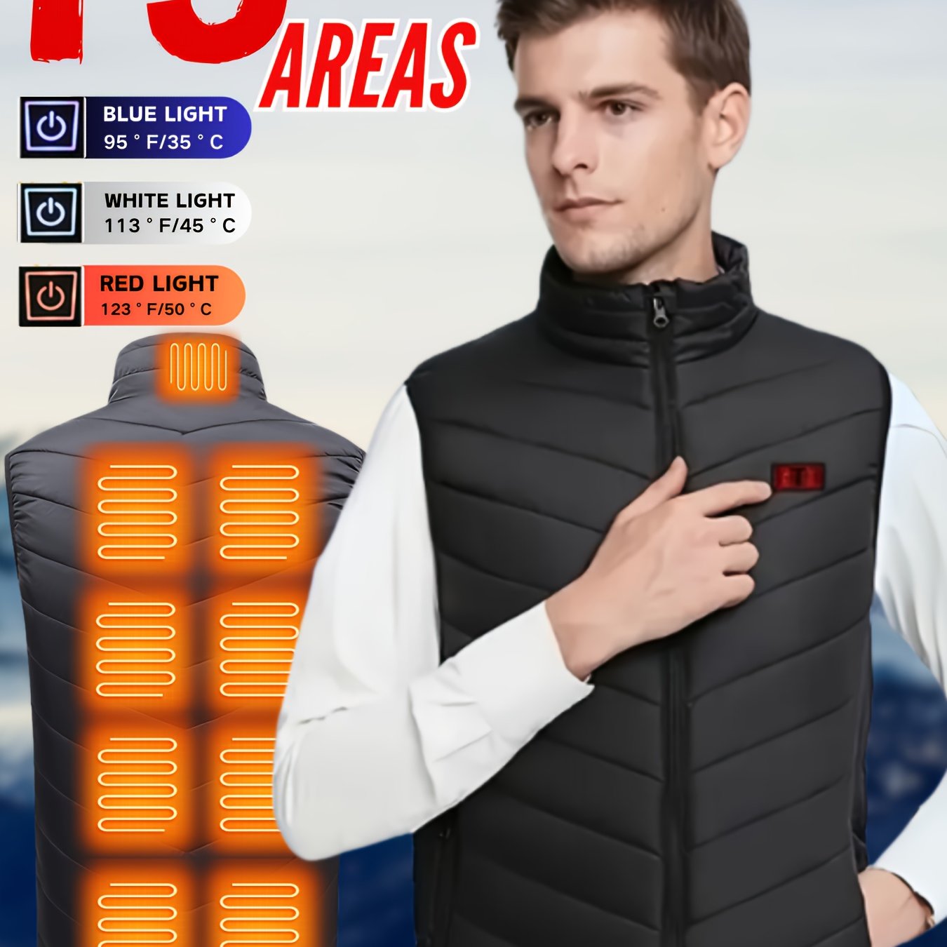 TEMU USB 충전식 스마트 보온 조끼, 남녀 공용