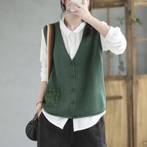 TEMU 아름다운 V넥 니트 베스트, 버튼 장식이 있는 폴리에스터로 제작되었습니다.