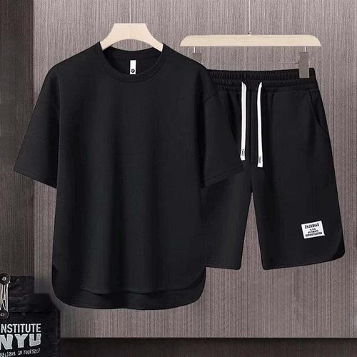 남성 운동복 세트 투피스 세트 크루넥 반팔 상의 & 반바지 남성 러닝복 플러스 사이즈 티셔츠 남성 여름 티셔츠