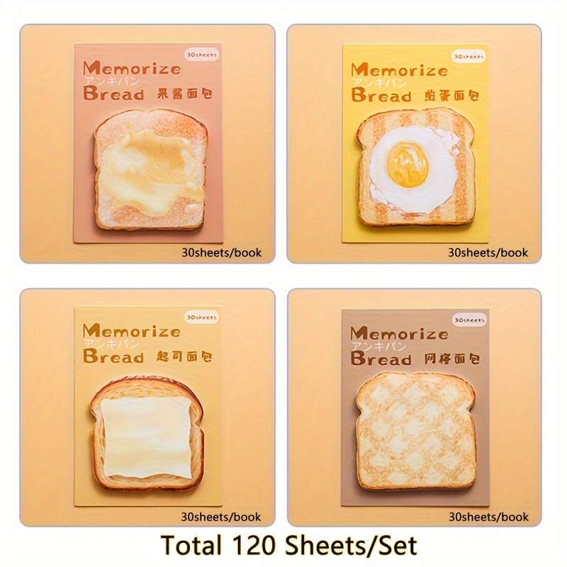TEMU 120장 창의적인 빵 패턴 스티키 노트 찢을 수 있는 메모지 휴대용 미니 메모패드 세트