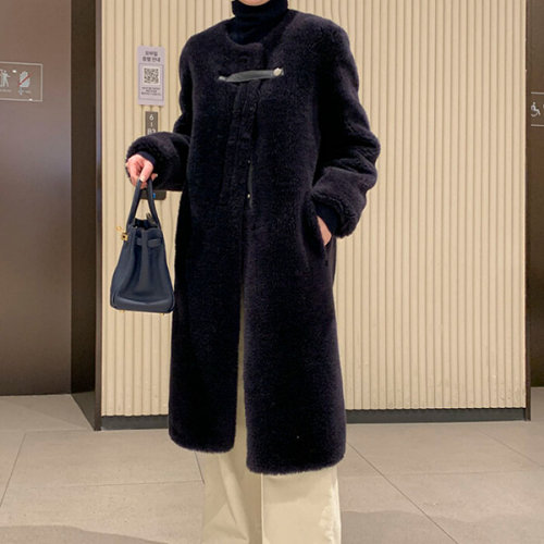 코코블랙 / 라인 밍크퍼 5부 롱코트