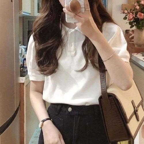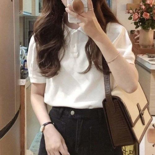 [셀럽하우스]여자 VIAY9508 깔끔한 디자인 부드러운 화이트 면 카라 반팔