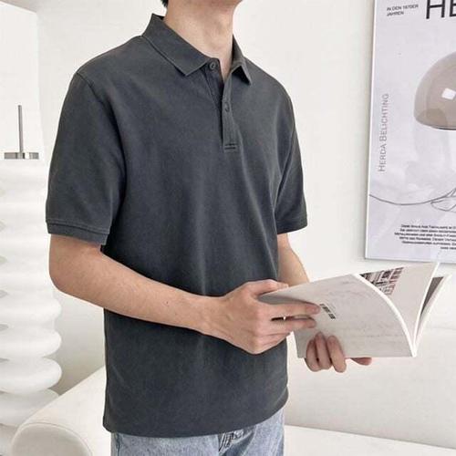 [셀럽하우스]남자스톤코튼카라티 RZIS8037 심플 PK카라반팔티셔츠(차콜) 데