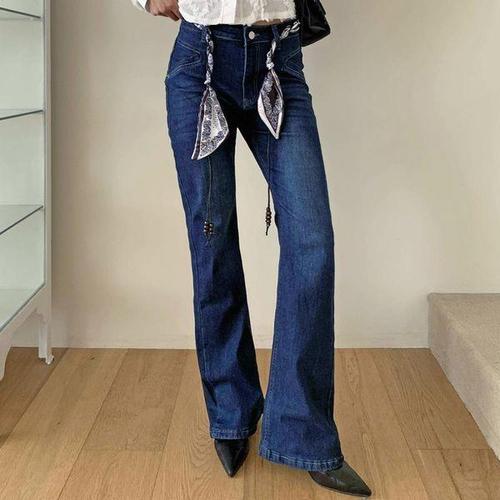 [옷자락]여성용 데일리 코튼 반다나 스트랩 부츠컷 청바지