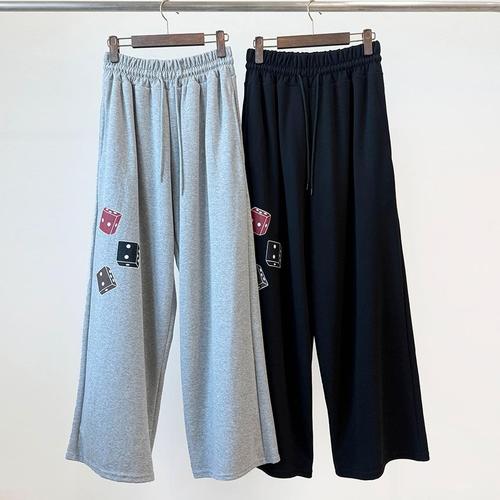 [옷자락] 남녀 공용 와이드 트레이닝 스트랩 밴딩 프린트 봄 면팬츠