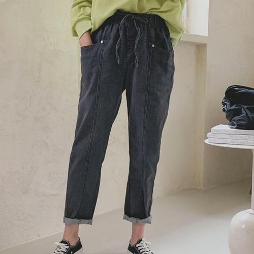 [다잇템]여성 하렘핏 면100 고무줄 스트랩 청바지