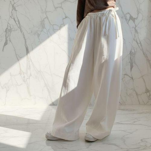 [신상오픈런]여성 면혼합 루즈핏 스트랩 디테일 와이드 팬츠