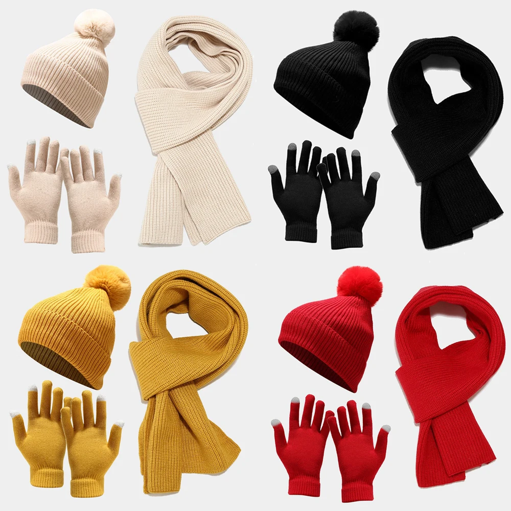 새로운 두꺼운 모자 스카프 장갑 세트 플러시 보온 여성 비니 모자 여우 귀 방풍 귀 보호 모자 사이클링용