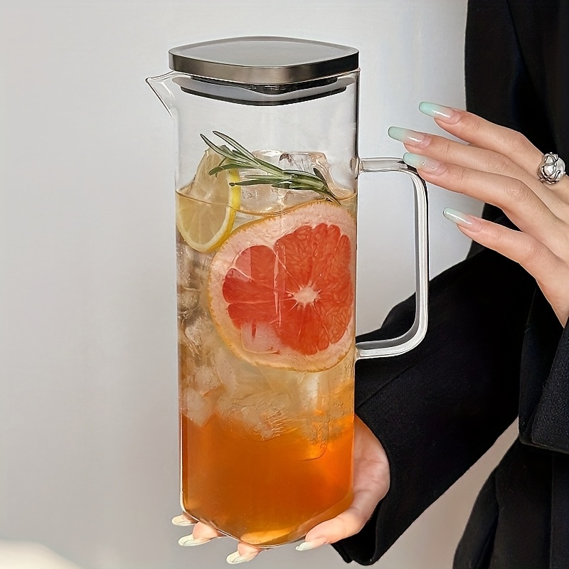 TEMU 1개 내구성 강한 내열 유리 주전자, 손잡이 포함, 투명하고 깔끔한 디자인, 차, 커피, 주스, 우유에 적합, 가정, 파티, 식탁, 주방용 - 가정용 주방용품, 모던 워터 포트, 내구성 있는 유리제품