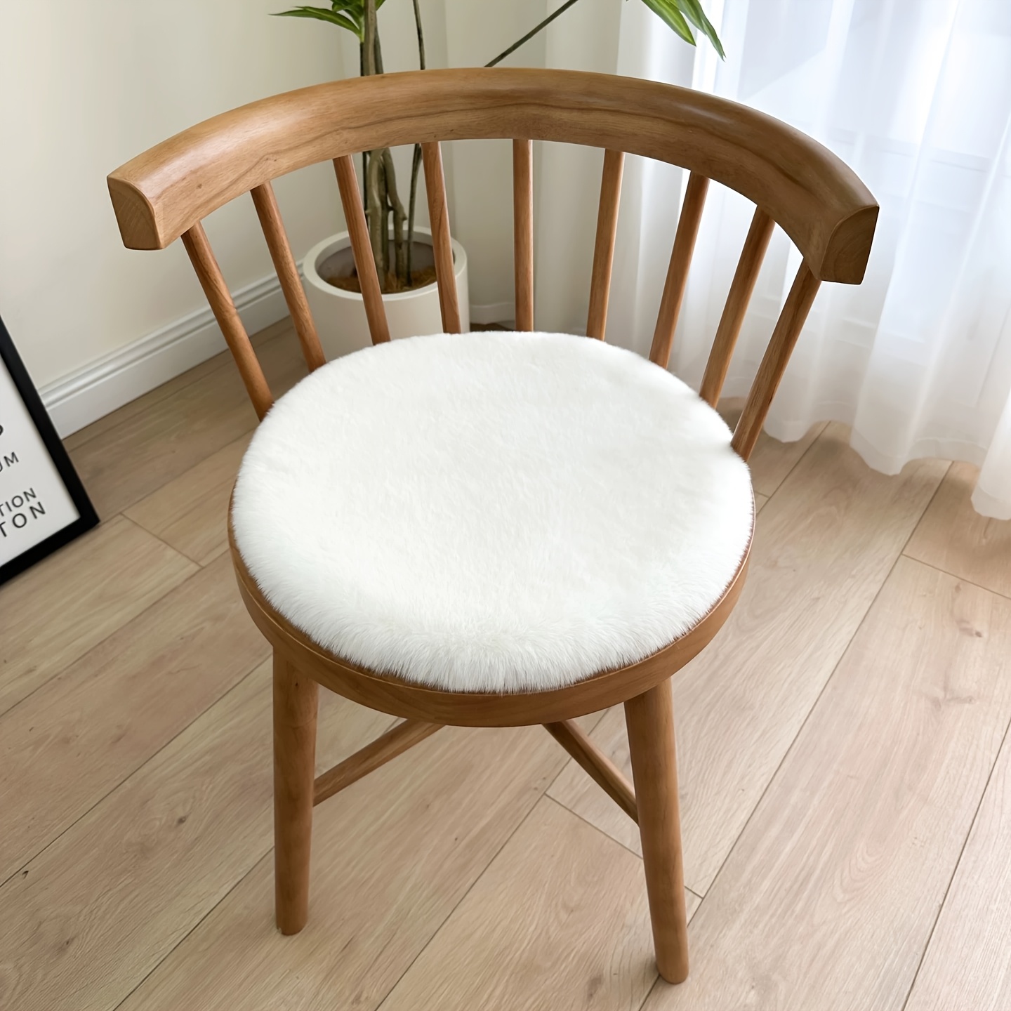 TEMU 클래식 스타일 소프트 토끼 인조 모피 의자 패드, 사계절 내내 편안하고 따뜻함, 소형 사이즈 짧은 풀 폴리에스터 원단, 부드럽고 푹신함, 의자 쿠션, 좌석 쿠션, 등받이 쿠션에 적합, 손세탁만 가능, 다용도 사용, 재봉 스티치