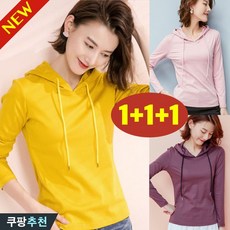(완전 추천) 1+1+1 날씬해보이는 여성 순색 베이직 얇은 후드티 긴팔티 봄 가을 편한 패션 코디 간절기 짧은 심플 이너 상의 클래식 소프트 데일리 캐주얼 3종 티셔츠