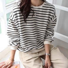 데일리앤 원트 여성 루즈핏 긴팔 스트라이프 맨투맨 티셔츠 봄 가을
