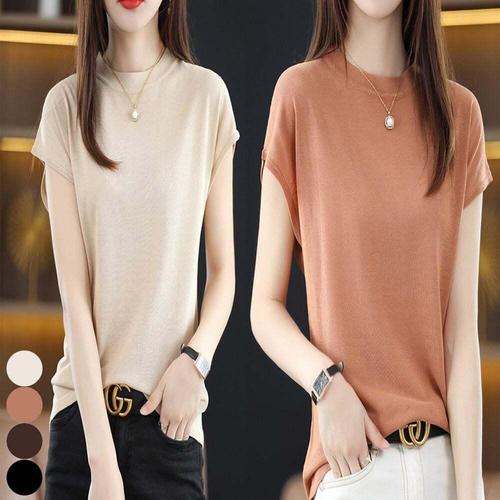 [셀럽하우스]여름 OFIH1348 팔뚝 가려주는 민소매 라운드넥 쿨 니트 티셔츠