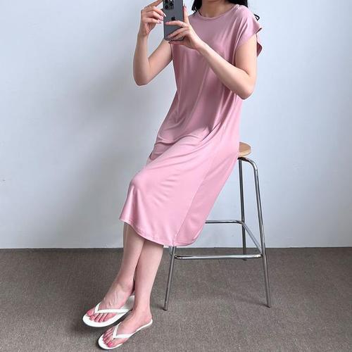 [BZJKR3YY_4A]여성 옆트임 반팔 쿨 미니원피스 편한 원피스