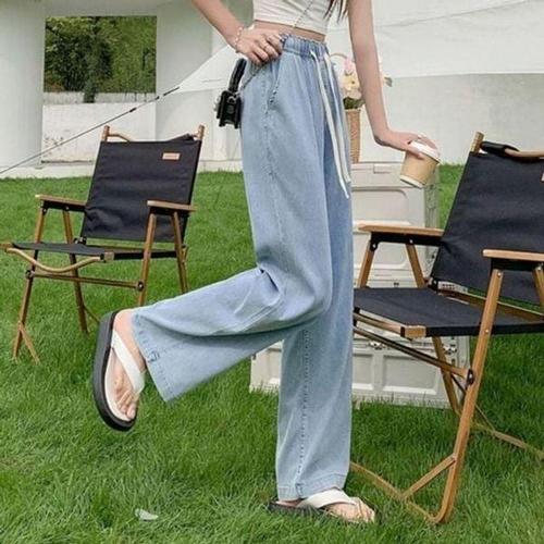 여름 청바지 여성 쿨 와이드 밴딩 팬츠 고무줄 통 홈웨어 여자