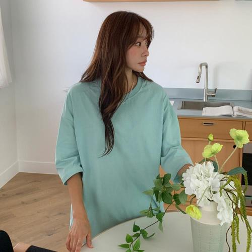 [다잇템]여자 칠부 면원단 무지컬러 박시핏 티셔츠
